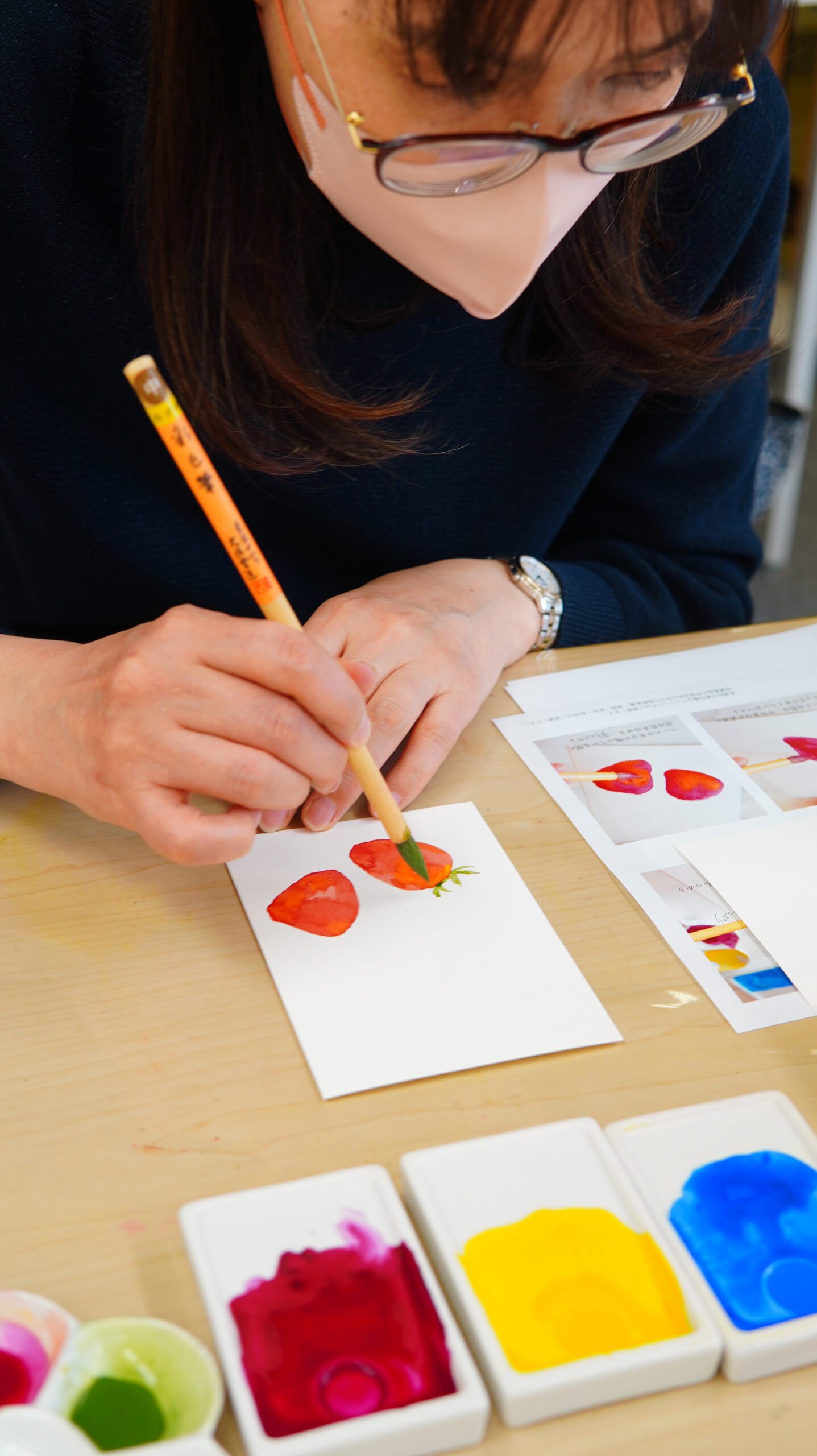 (追記:受講生の方が手編みされた彩墨ケースが、3色の色合いまで完璧ですごく可愛かった♡運搬しても割れにくそうだしナイスアイディア👍)