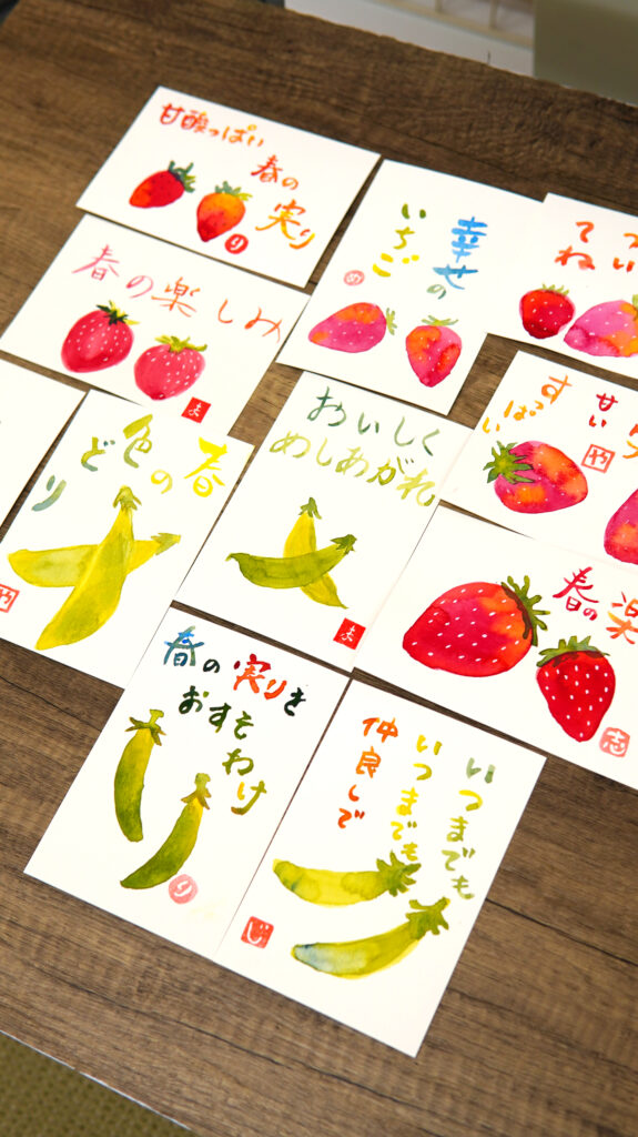 イチゴやスナップえんどうを目の前に、